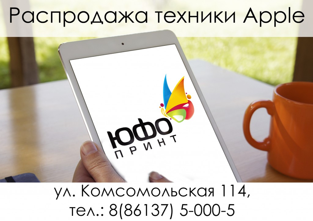 Внимание! В фотоцентре ЮФО’Принт стартовала распродажа техники Apple! Успейте забрать свой девайс по очень привлекательным ценам! Полный перечень продукции уточняйте у наших менеджеров, и помните что количество товаров по специальной цене строго ограничено!